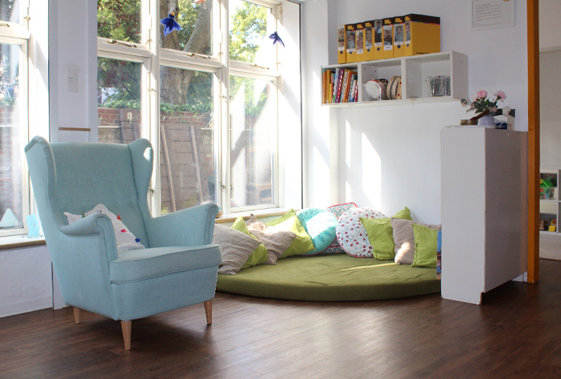 Nach dem Ansatz der Reggio-Pädagogik bildet der Raum den sogenannten „Dritten Erzieher“. Unsere Erzieherinnen bereiten die Räume immer so vor, dass die Kinder ihrem Selbstbildungsprozess folgen können.
