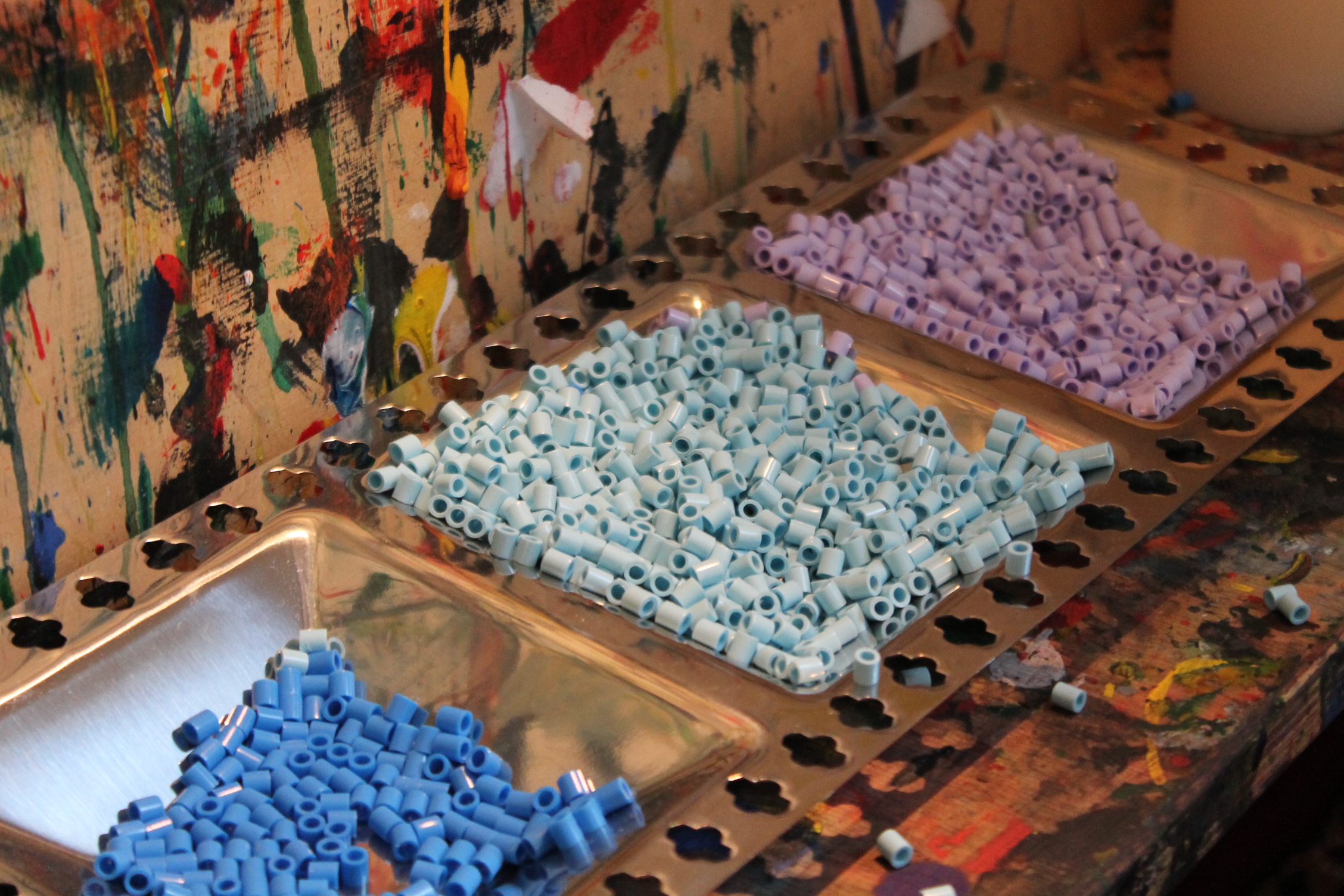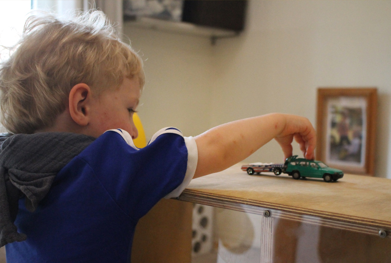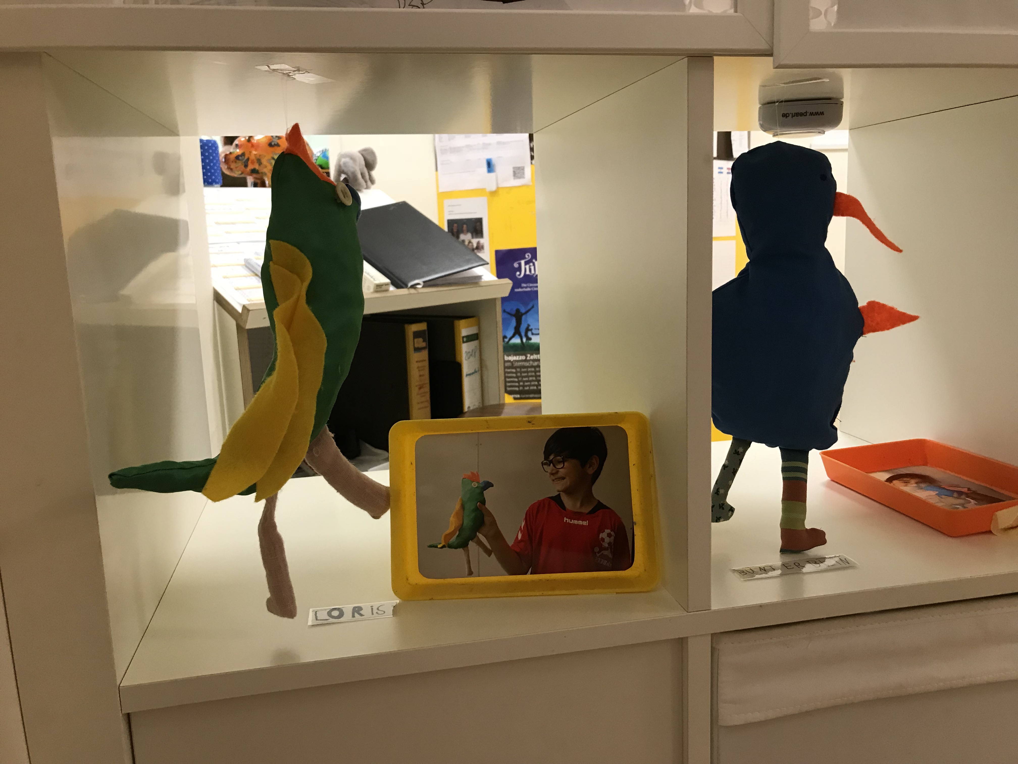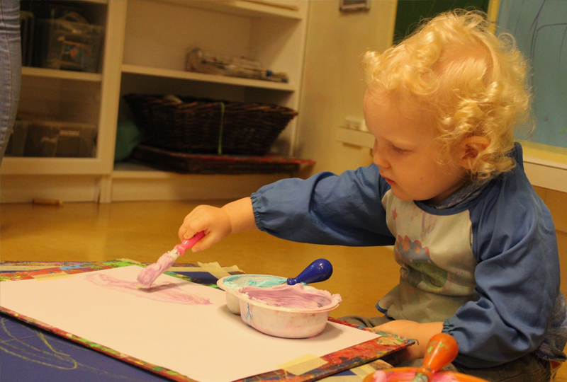 Eine Treppe führt an der Kinderwohnung vorbei direkt in unser Atelier im Obergeschoss. Hier laden wir die Kinder ein, sich an Material- und Farbbuffets auszustatten und dann an bodennahen Maltischen und Wandstaffeleien kreativ zu arbeiten. Die Holzwerkstatt bietet die Möglichkeit, erste handwerkliche Erfahrungen zu sammeln und große Objekte zu erstellen. Die aus den Interessen der Kinder entwickelten Projekte werden hier ebenfalls mit Engagement und Ideenreichtum umgesetzt, so dass jedes Kind die Möglichkeit hat sich einzubringen und zu gestalten.