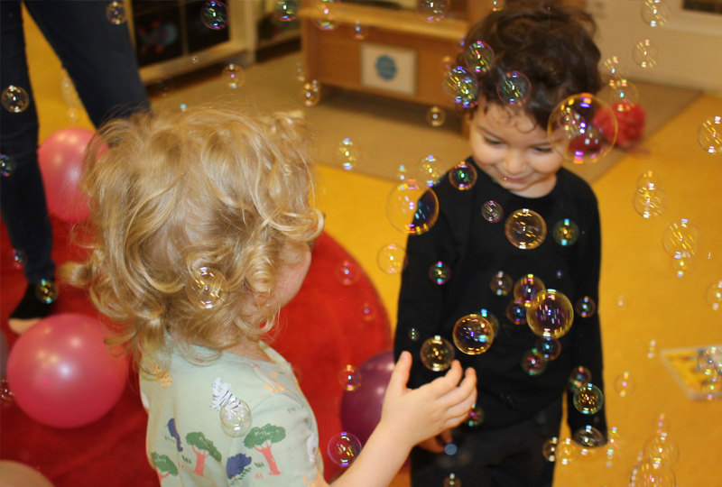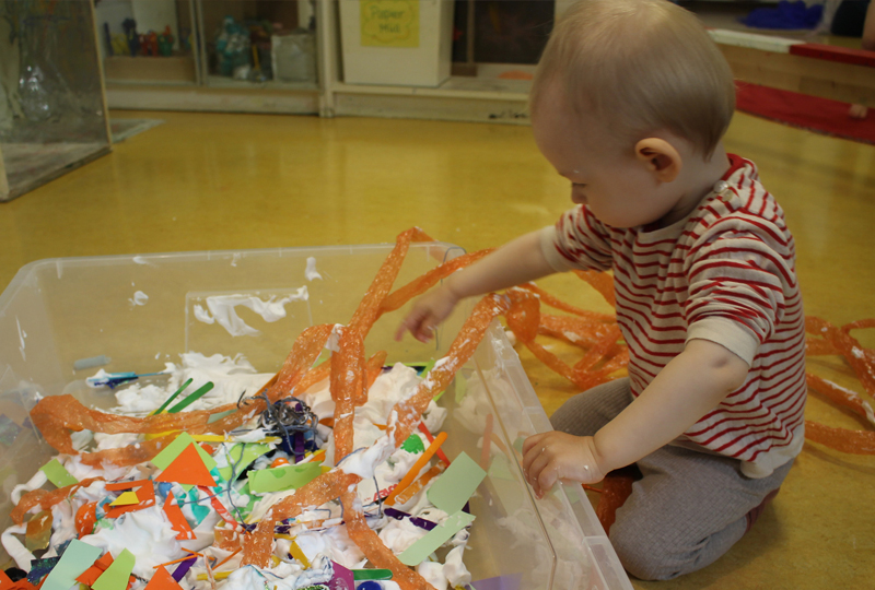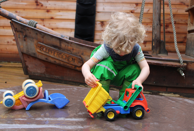 Das Raum-in-Raum Konzept mit Bauecke, Wohnung, Mini-Atelier und Forscherbereich bildet nach dem Ansatz der Reggio-Pädagogik den sogenannten Raum als Dritten Erzieher und regt die Kinder zur Selbstbildung an. Unsere Erzieher verstehen sich als liebevolle Begleiter und Beziehungsgeber, die den Kindern einerseits Raum zur Selbstbildung lassen und andererseits Unterstützung und Sicherheit bieten wenn es das Kind wünscht. Ein kleines Außengelände im Innenhof mit Holzspielschiff und Sandkisten steht direkt angrenzend zur Verfügung.