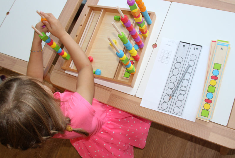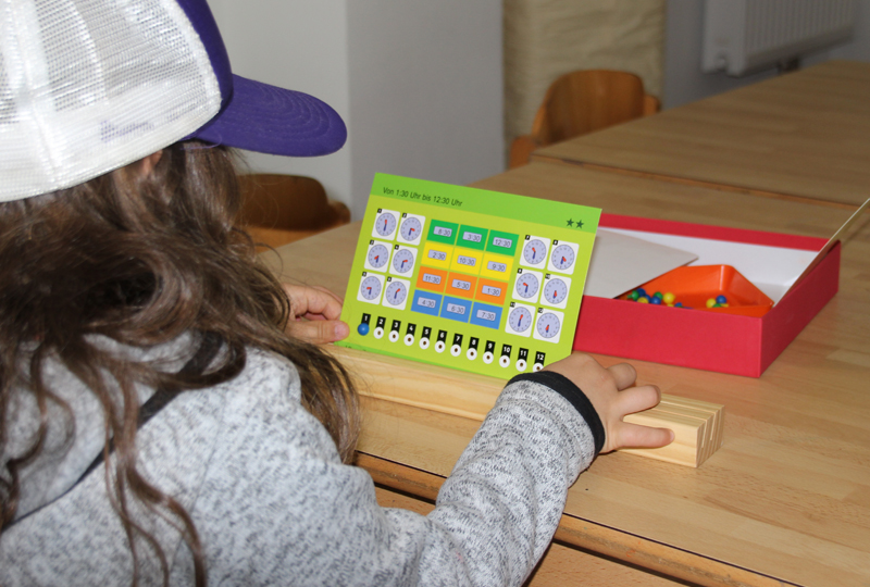Die Materialien stammen vorwiegend aus dem Montessori- und Nikitinbereich. Die Kinder starten mit wenigen ausgewählten, selbsterklärenden Lernkästen und bekommen, ihrem eigenen Lernfortschritt folgend, im Laufe des Lernwerkstattjahres sukzessive Zugang zu immer weiteren und anspruchsvolleren Materialien.
