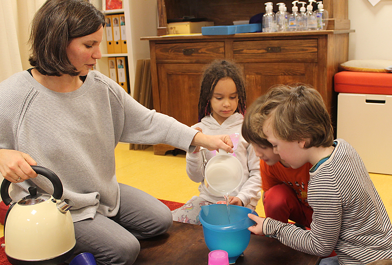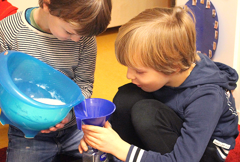 Unsere Erzieher treten in der Lernwerkstatt bewusst noch weiter in den Hintergrund, denn unser Ziel ist es nicht, schulische Inhalte vorweg zu nehmen, sondern die Kinder zur Selbstbildung orientiert am eigenen Entwicklungsstand anzuregen. Dabei werden selbstverständlich auch Regeln aus den Bereichen Ordnung und Selbstorganisation erlernt, die die Basis für einen erfolgreichen Schulbesuch bilden.